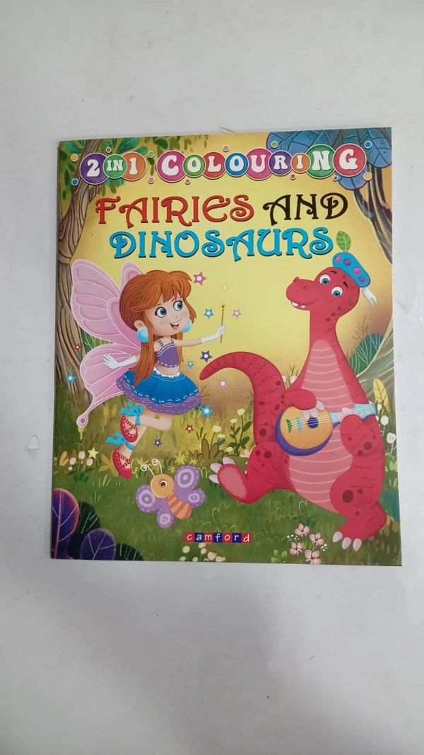 2 IN 1 COLOURING FAIRIES AND DINOSAURS
