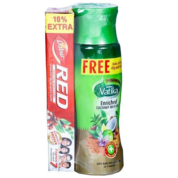 VATIKA ENRICHED COCONUT HAIR OIL 150ML+DABUR RED PASTE 37G FREE